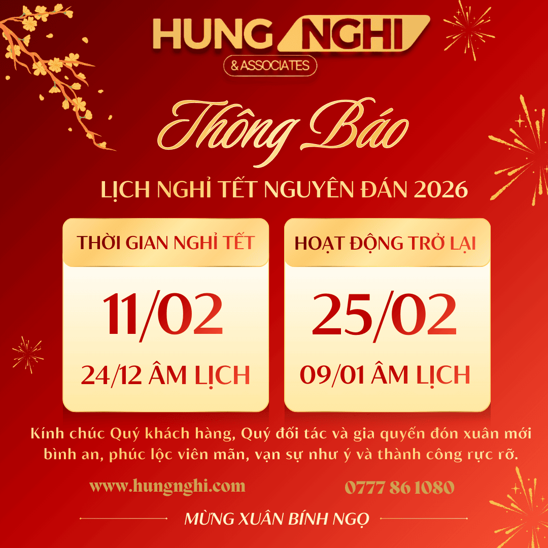 Hòa trong không khí đón chào năm mới Bính Ngọ, VĂN PHÒNG LUẬT SƯ HÙNG VÀ NGHI trân trọng thông báo lịch nghỉ Tết Nguyên đán 2026 như sau: